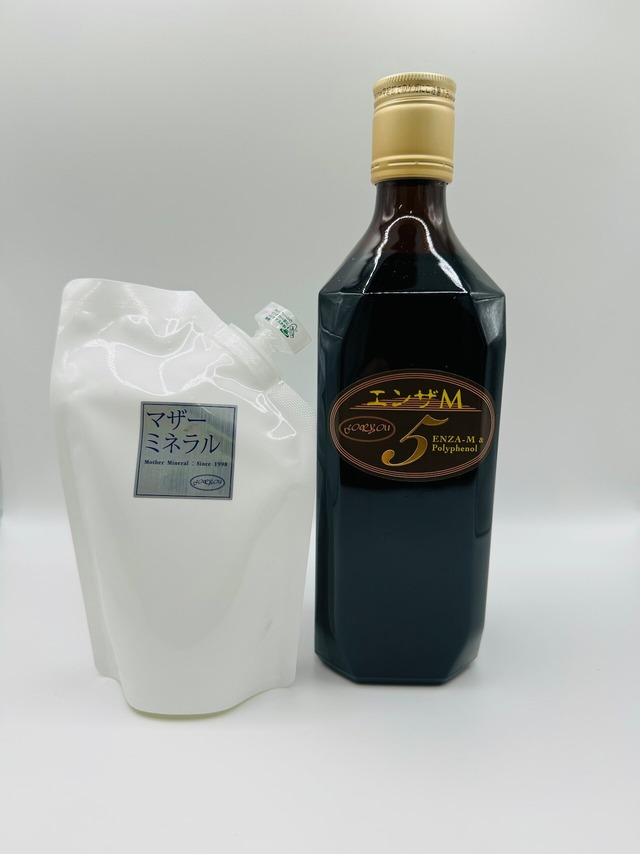 新春企画3番セット(エンザM5とミネラル) 12/9~1/30迄購入で ミネラル150gプレゼント! 3番セット(2点)14,494円購入 ・エンザM・・・・・11286円 ・マザーミネラル150g・・3208円ご購入で! ご注意:クレジットカード決済、キャリア決済、Pay ID のみとなります。 ◎エンザM5とミネラルのセットです。 エンザM5 ■1日目安約18㏄ 水で4~5倍に薄めてお飲みください。 マザーミネラル ■水500mlに2スポイドのマザーミネラルを入れ、1日3本(1500ml)を目標にお試しください。 (お水はきららの石で出来たまろやかなお水がオススメです。)